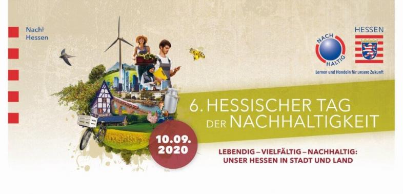 Das Druckbanner zum hessischen Nachhaltigkeitstag trägt Name, Datum und Logos