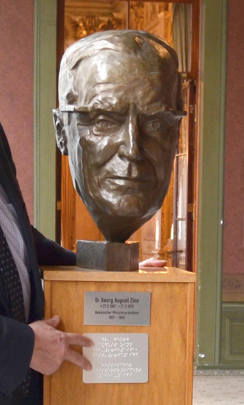 Die Beschriftungen der jeweiligen Werke werden durch eine erhabene Profilschrift fühlbar. Zusätzlich kann auch mit Braille beschriftet werden. Junge Leute mit Blindheit bevorzugen in aller Regel die Punktschrift. Die Profilschrift richtet sich demgegenüber besonders an die große Zahl spät erblindeter älterer Menschen. Sie können die großen, erhabenen Buchstaben oft noch gut fühlen und erkennen, haben aber die Brailleschrift im Alter nicht mehr erlernt.
