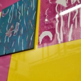 Im Juli 2022 fand unsere Druckgraphik-Ausstellung vom und im Malatelier der blista statt. Zu sehen gab es Druckergebnisse aus vier Workshops, welche für interessierte Schüler*innen der blista und der Stadt Marburg im vorausgegangenen Schuljahr angeboten wurden. Dabei gab es die Möglichkeit, verschiedene Hochdrucktechniken zu erlernen und zu kombinieren.