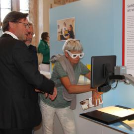 Zugänglich und barrierefrei erzählt die Ausstellung blick:punkte von der Entwicklung der blista inmitten der Universitätsstadt Marburg. Es geht um die Gründung im Ersten Weltkrieg, das Naziregime, eine Zeit unmenschlicher Verbrechen, es geht um Mythen, Macher, die stürmische Zeit des Aufbruchs. Und um Exponate zum Anfassen und Ausprobieren, die Entdeckung immer neuer Möglichkeiten für ein selbstständiges und selbstbestimmtes Leben: Bücher, die für Blinde lesbar werden; Apps, die Farben erkennen, Computer, die sprechen - zugleich geht es um das Hier und Jetzt, das gesellschaftliche Miteinander von blinden, sehbehinderten und sehenden Menschen.
