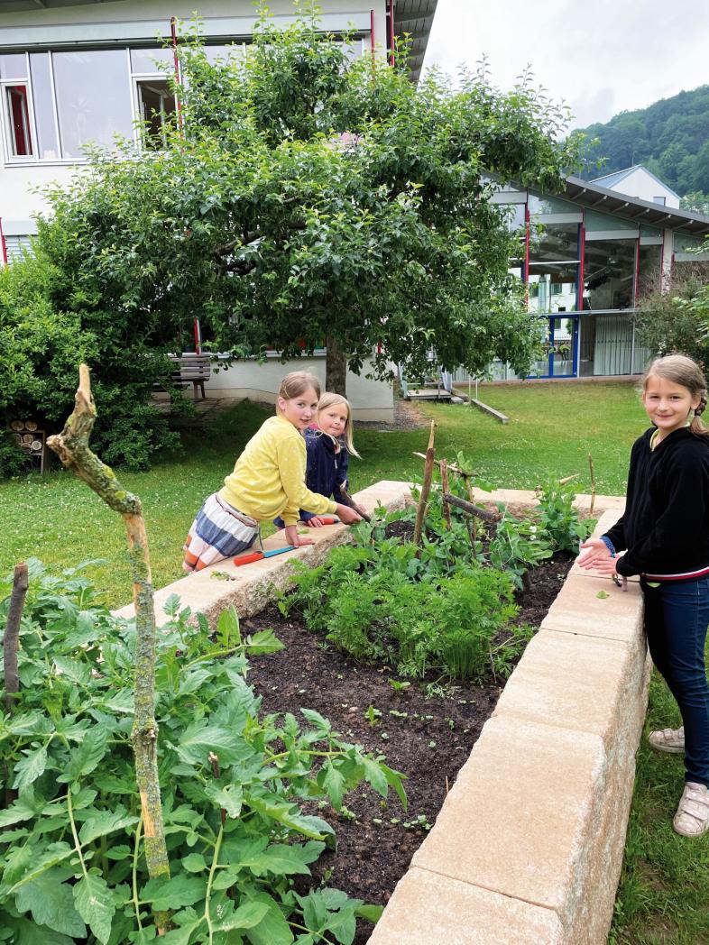 von Clemens und Viktoria | Durch den Bau der neuen Hochbeete hatten wir und die Lerngruppe 1a der Montessori-Schule die Möglichkeit, Gemüse anzupflanzen und auch bereits erstes Gemüse zu ernten. Natürlich brauchten die zwei Hochbeete Pflege und auch Gemüse sät und erntet sich nicht von allein. Deswegen waren wir ein oder zwei Mal in der Woche an den Beeten und haben im Mai und Juni die nötigen Vorbereitungen getroffen. Wir haben zum Beispiel das Beet vermessen und die Erde gelockert. Dann konnten wir mit der Aussaat beginnen. Bereits nach kurzer Zeit sah man erste Gemüsepflänzchen, aber auch viele Wildkräuter bzw. Unkraut hatte sich einen Weg aus der Erde gebahnt. Schon bald musste man Unkraut jäten und wir düngten die Pflanzen. Dies verfehlte seine Wirkung nicht und so wuchsen viele Pflanzen – besonders Kartoffeln und Tomaten – in die Breite und Höhe. Aber auch Wassermelone, Radieschen, Möhren, Erbsen und Kohlrabi wuchsen von Tag zu Tag.