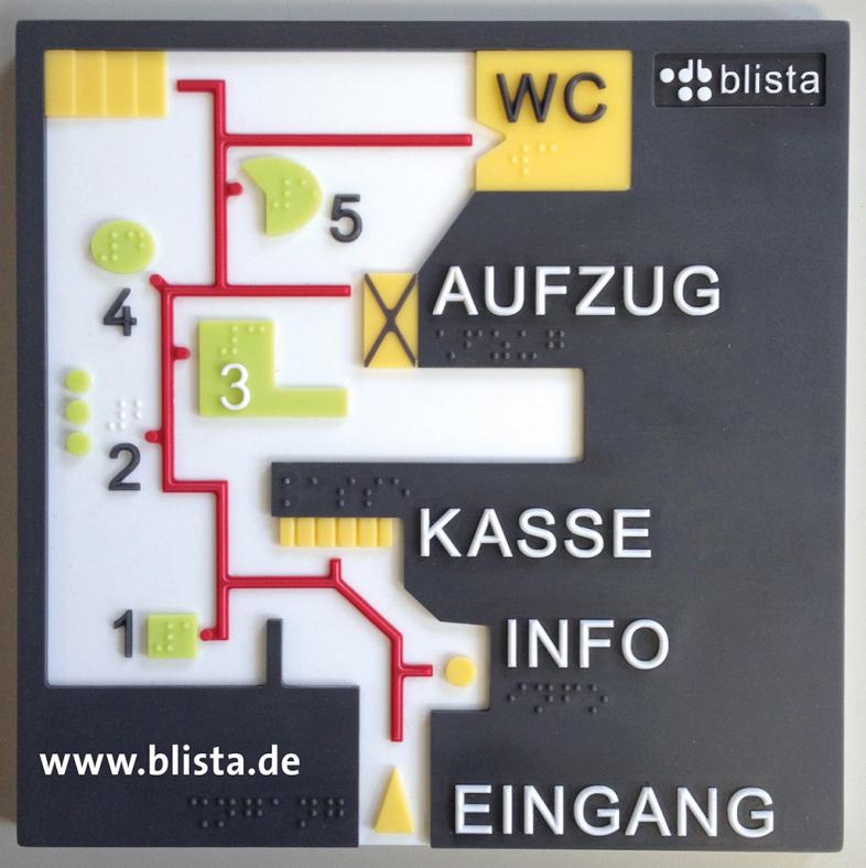 Die blista-Experten beraten daher ausführlich und erstellen auf Wunsch eine individuelle Konzeption für den Einsatz von taktilen und/oder kontraststarken Plänen und Tastmodellen im Innen- und Außenbereich.