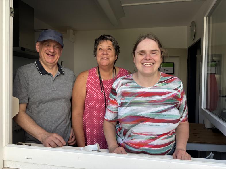 Alle Neuankömmlinge wurden persönlich von Annette Stelker, der Leiterin der Blindentechnischen Grundrehabilitation, willkommen geheißen und erhielten ein kleines Gastgeschenk von der Öffentlichkeitsarbeit: Eine hübsch zusammengefaltete, mit einer Schleife verzierte blista-Tasche mit einer Unterschriftenschablone darin. Die Rehabilitierenden freuten sich sehr über die nette Geste.