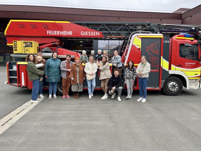 Wir als pädagogische Fachkräfte waren deshalb mehr als erfreut und dankbar, als wir von einem der Väter der Gruppe ins GAZ eingeladen wurden. Das Gefahrenabwehrzentrum (GAZ) Gießen ist ein Neubau, der die Berufsfeuerwehr der Stadt, das Feuerwehrtechnische Zentrum des Landkreises, die Leitstelle für den Katastrophenschutz und ein Ausbildungszentrum für die Freiwillige Feuerwehr vereint. Leos Vater war unser Experte für den Tag, da er selbst als Feuerwehrmann bei der Berufsfeuerwehr angestellt ist.