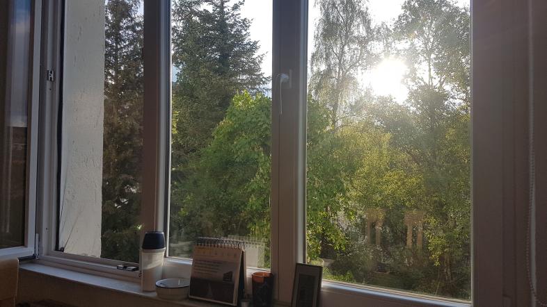 Deshalb arbeitete Herr W passiv, schaute bei einem großen Cappuccino aus dem Küchenfenster und beobachtete zwei Elstern dabei, wie sie trotz Nieselregens fleißig Zweige für den Bau eines Nestes hoch oben in einer Birke im Garten sammelten. Doch plötzlich galt etwas ganz anderem seine Aufmerksamkeit.