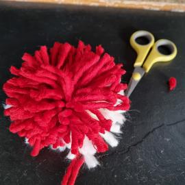 Eine rote oder weiße Bommel lässt sich schnell selbst herstellen.