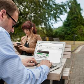 • Ein junger Mann lädt sich Audiodateien aus dem Internet