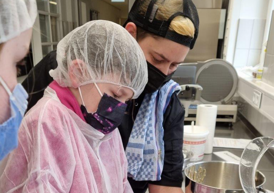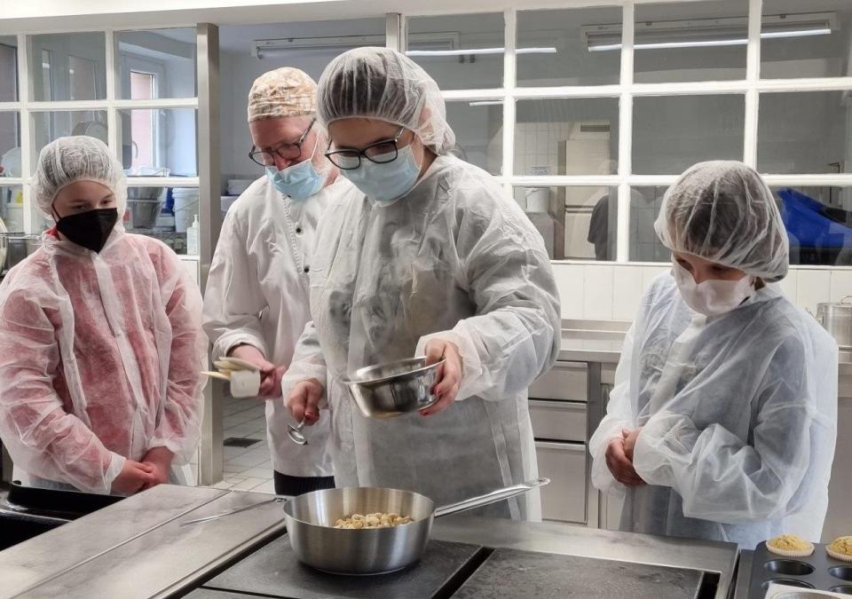 Bild 2 von 8: Eine Schülerin bereitet den Teig