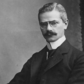 • Alfred Bielschowsky sitzt auf einem Stuhl, am unteren Rand des fotos ist die Unterschrift von A. Bielschowsky zu sehen